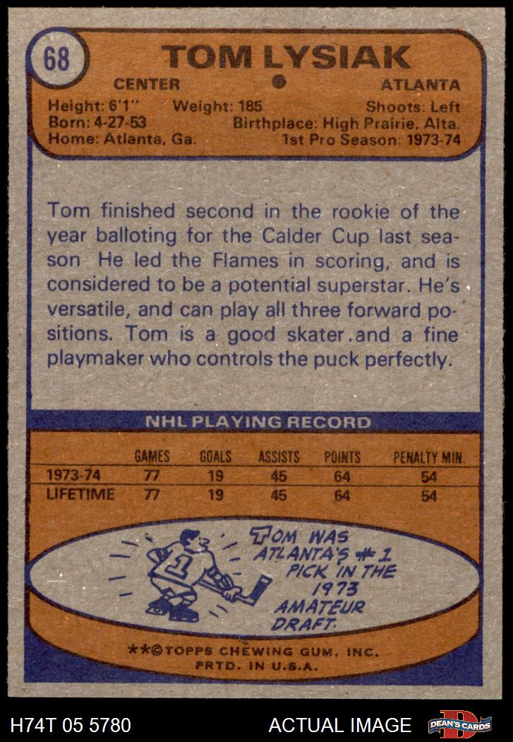 1974 Topps #68 Tom Lysiak