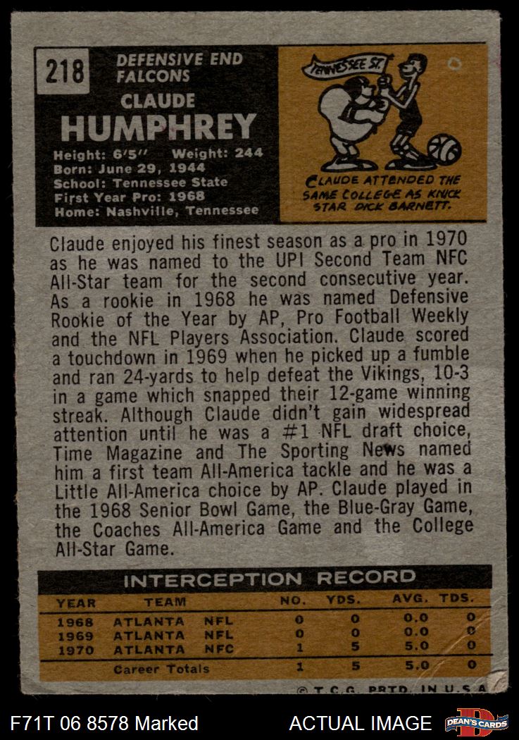 1971 Topps #218 Claude Humphrey 1 - POOR