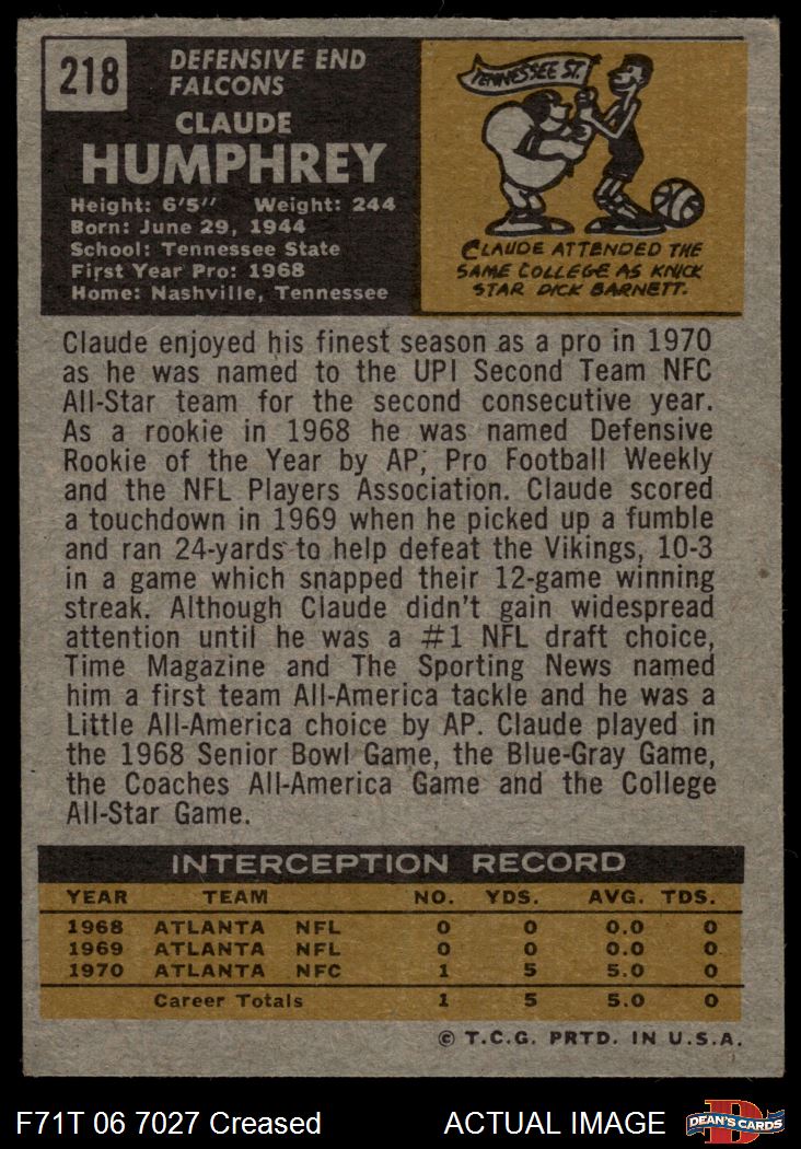 1971 Topps #218 Claude Humphrey 3.5 - VG+