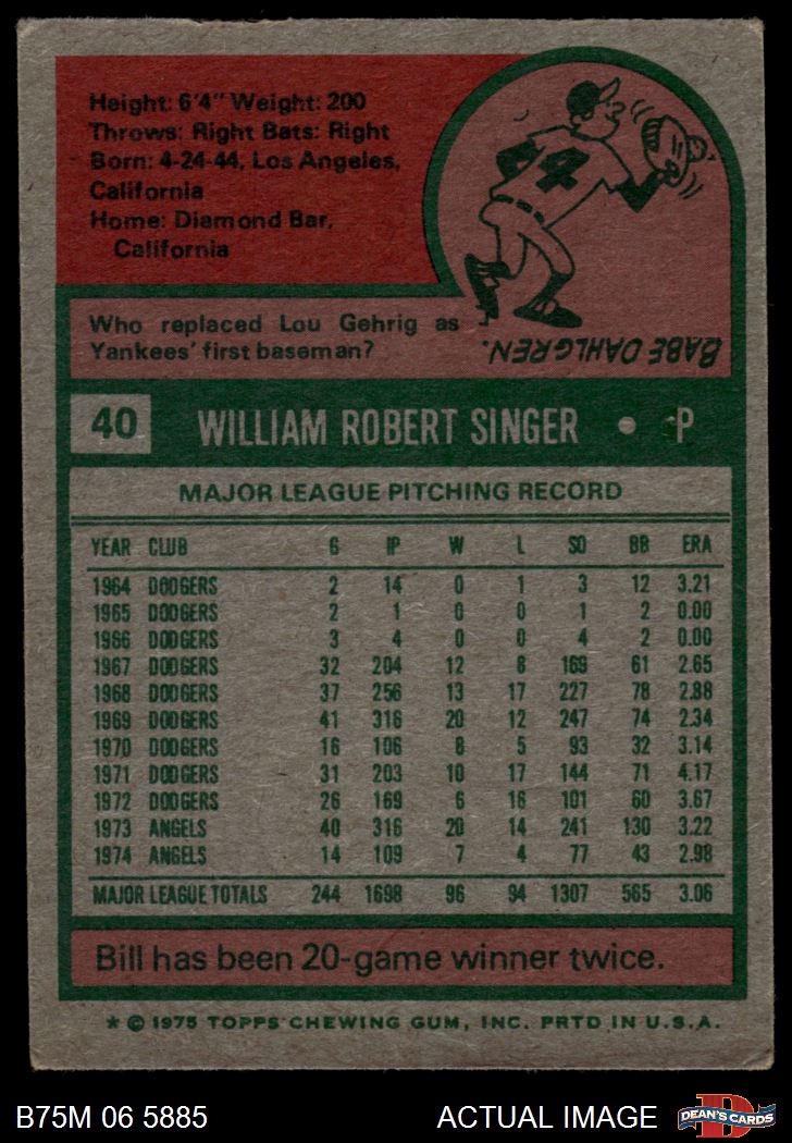 1975 Topps Mini #40 Bill Singer 6.5 - EX/MT+
