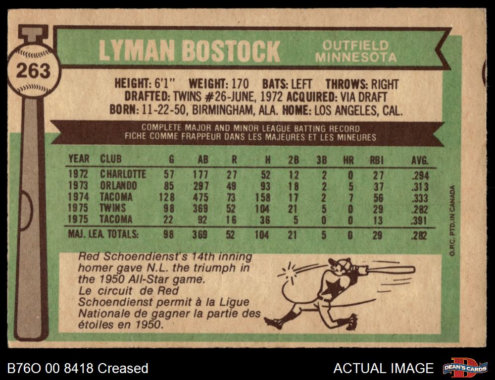 1976 O-Pee-Chee #263 Lyman Bostock 3 - VG