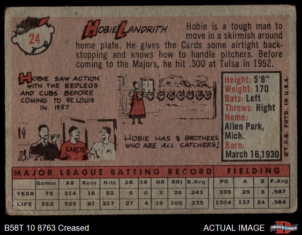 1958 Topps #24 YN Hobie Landrith 1.5 - FAIR