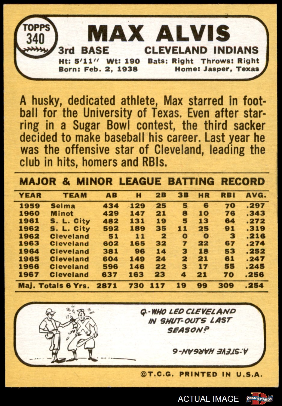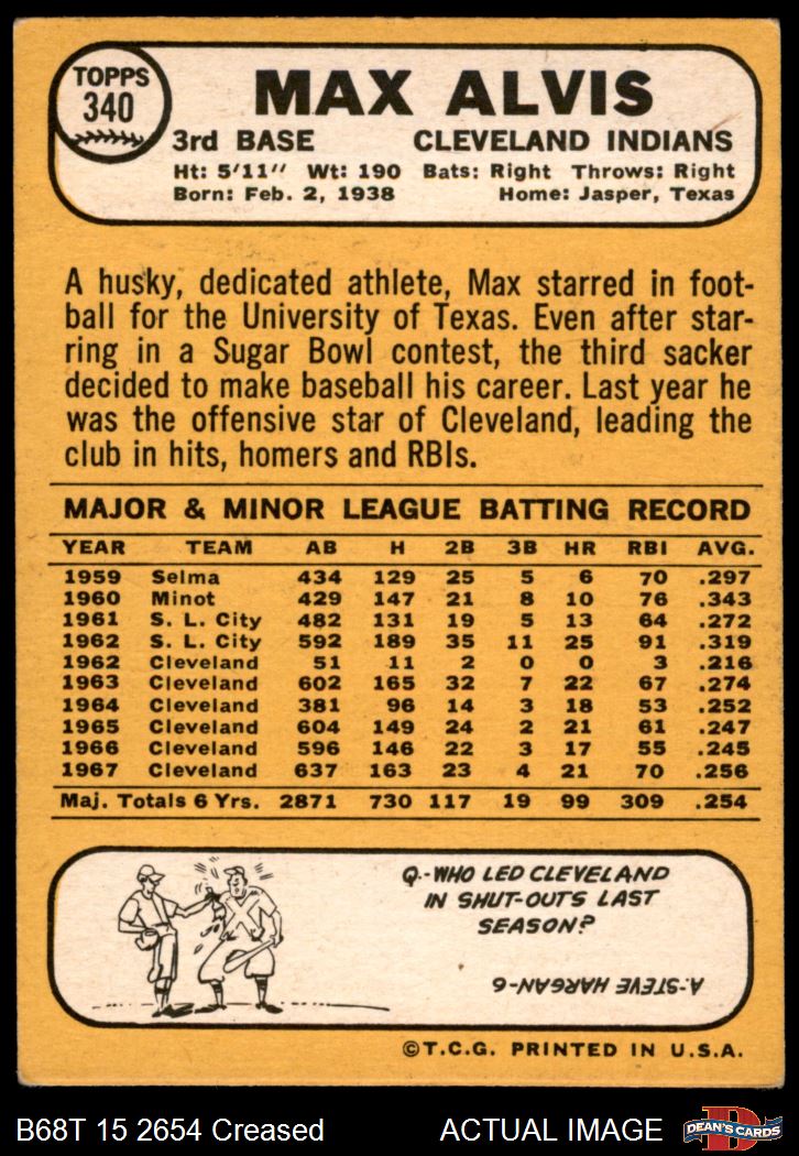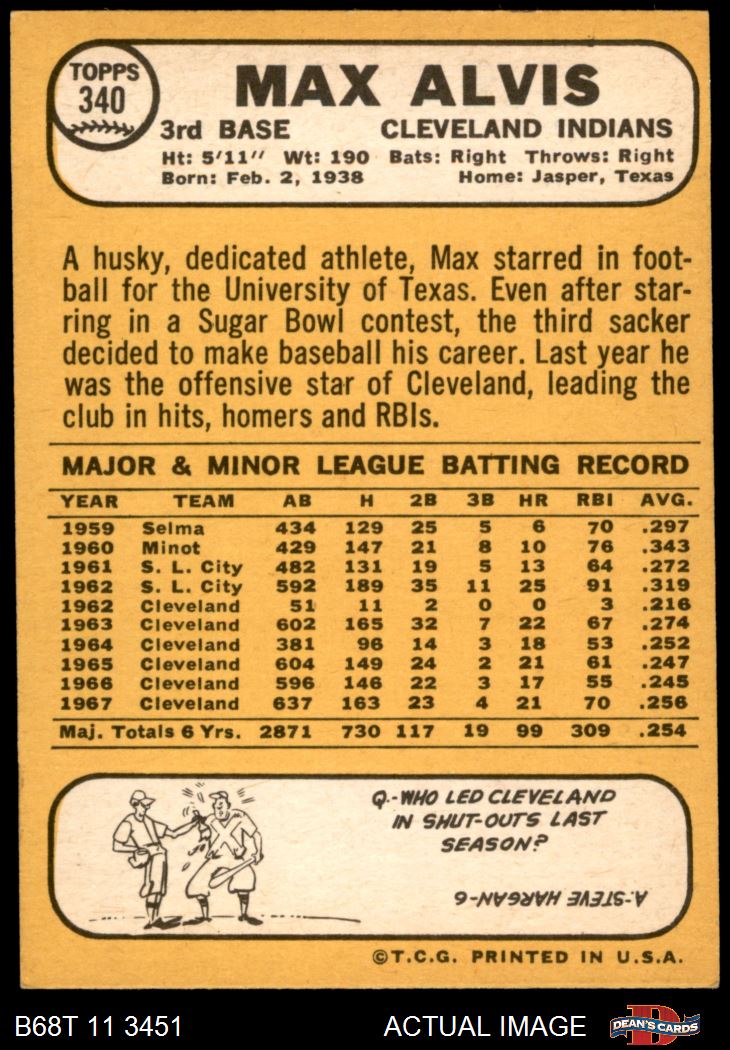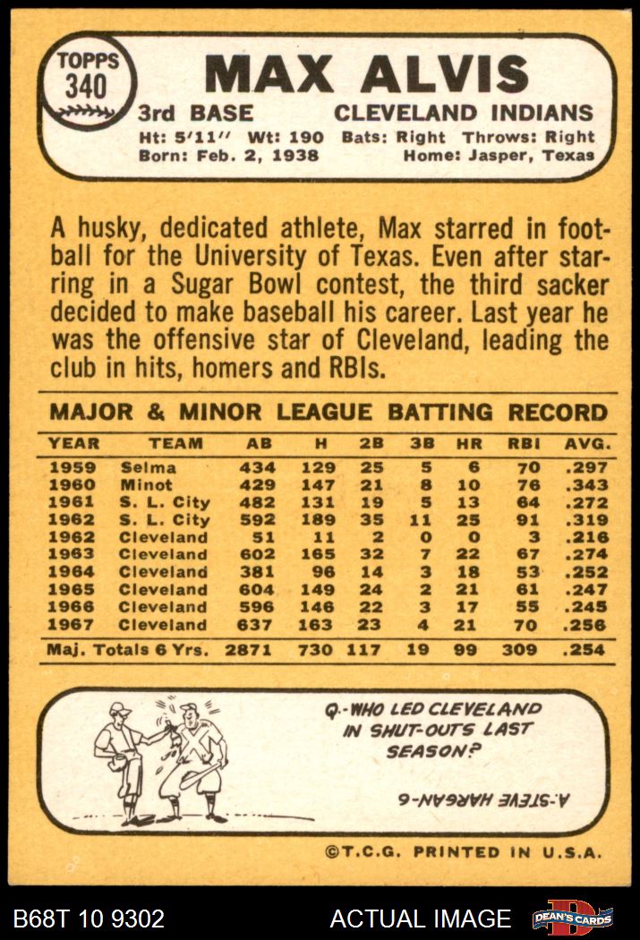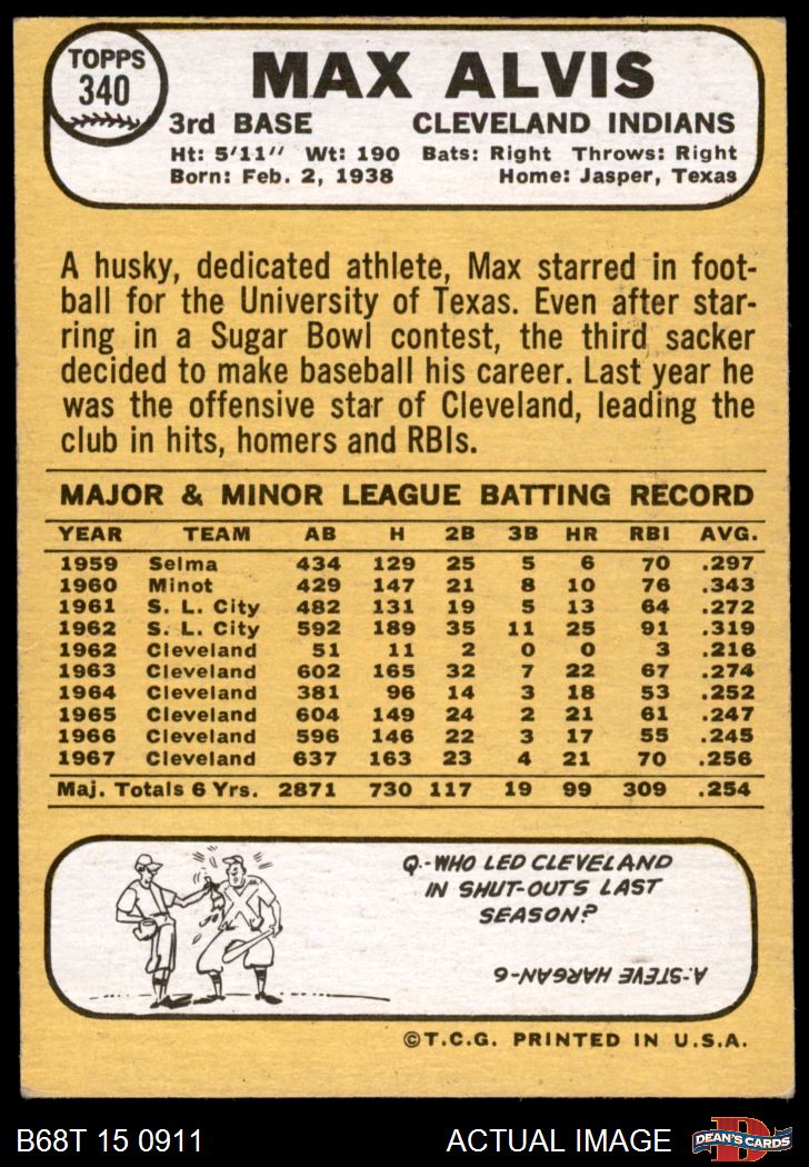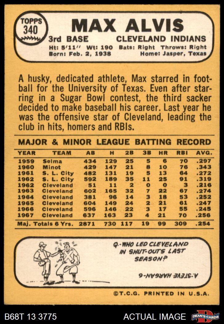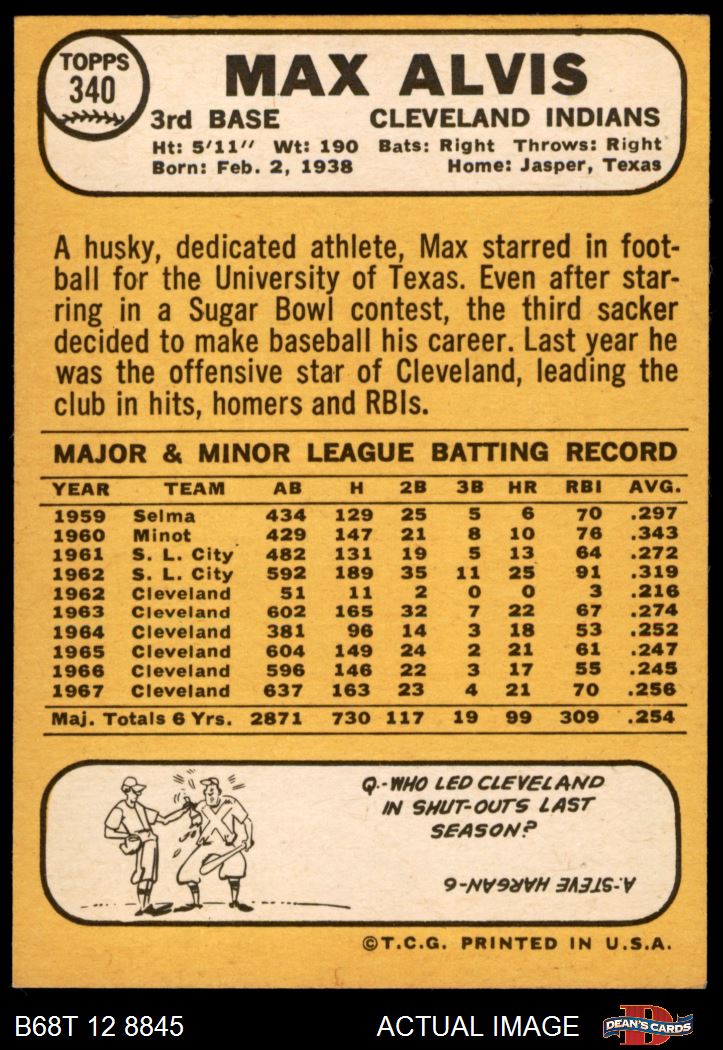 1968 Topps #340 Max Alvis