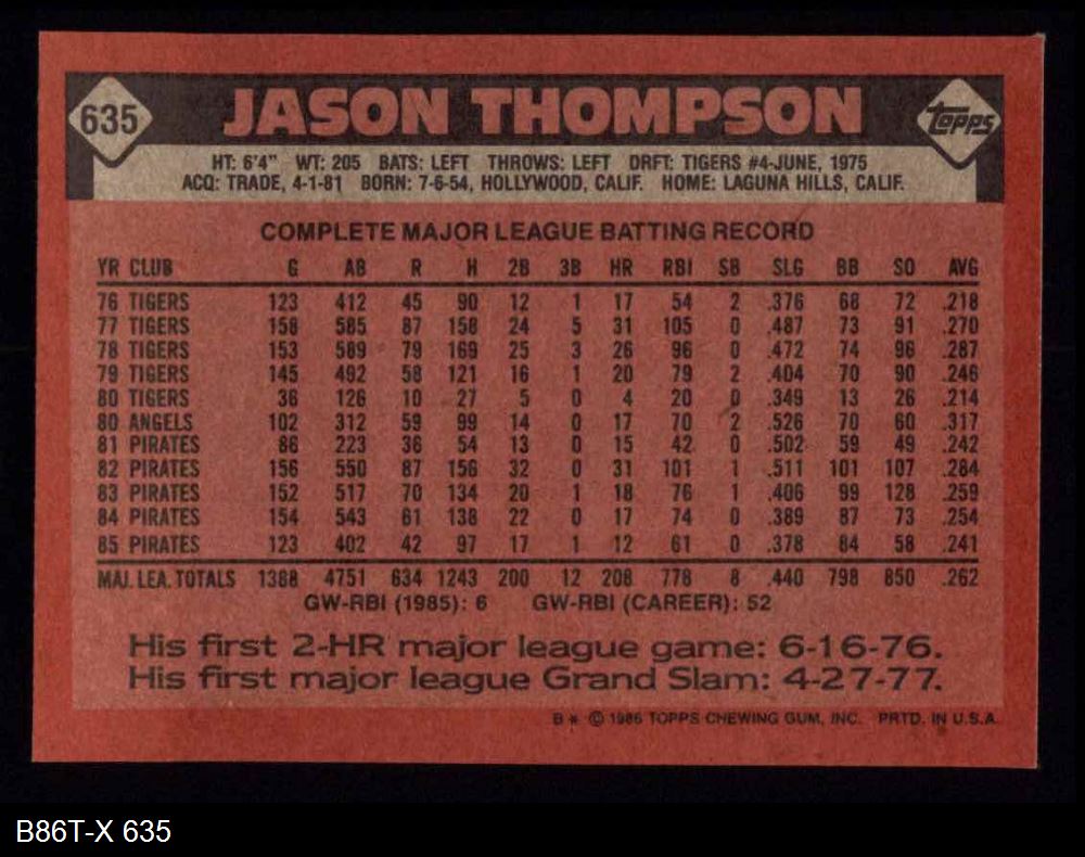 1986 Topps #635 Jason Thompson