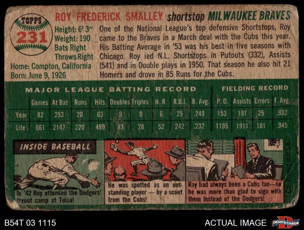 1954 Topps #231 Roy Smalley AUTHENTIC