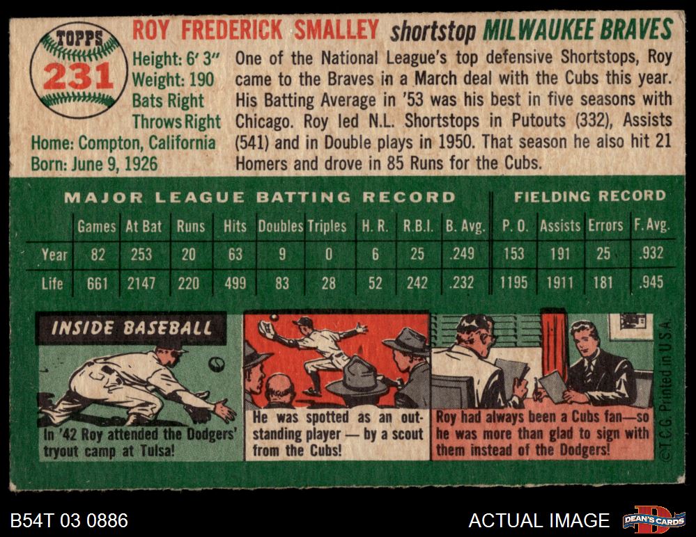 1954 Topps #231 Roy Smalley 4 - VG/EX