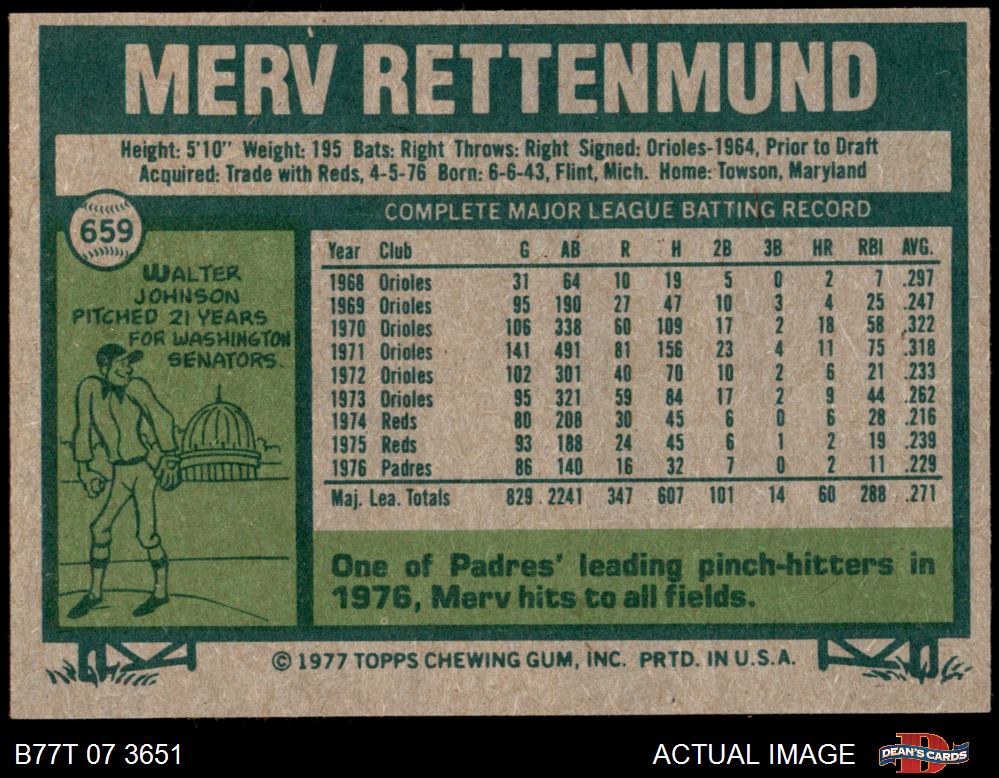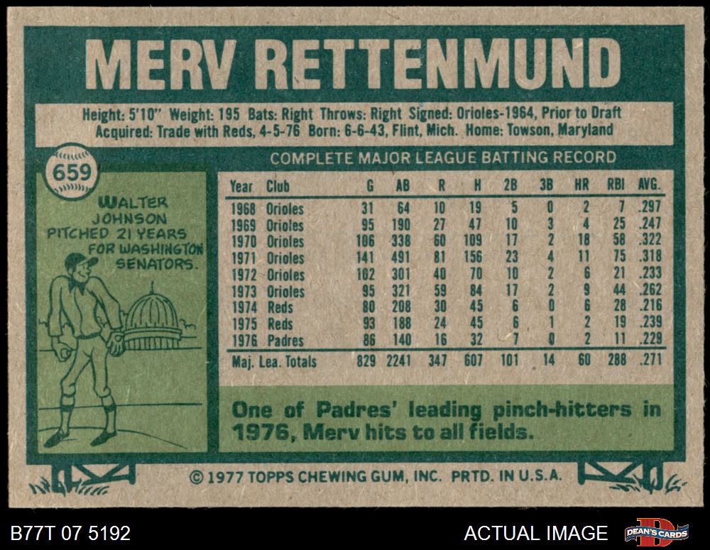 1977 Topps #659 Merv Rettenmund