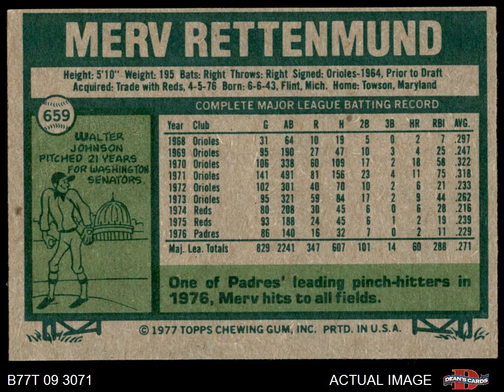 1977 Topps #659 Merv Rettenmund 4 - VG/EX