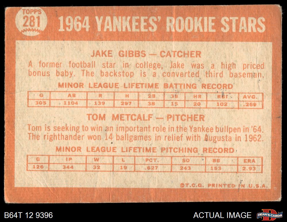 1964 Topps #281 - Jake Gibbs / Tom Metcalf Yankees Rookies 1.5 - FAIR