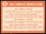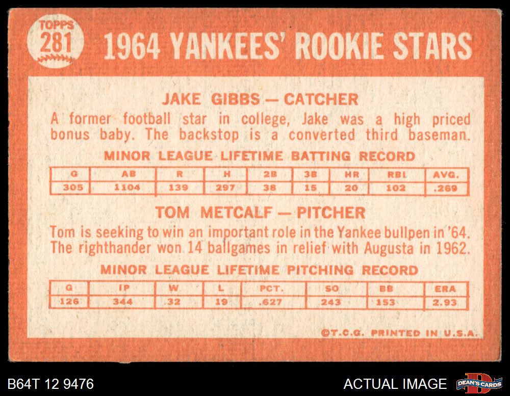 1964 Topps #281 - Jake Gibbs / Tom Metcalf Yankees Rookies 2 - GOOD