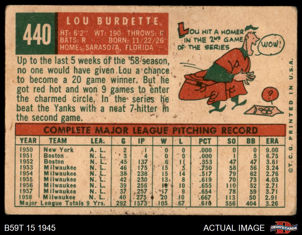 1959 Topps #440 Lew Burdette 1.5 - FAIR