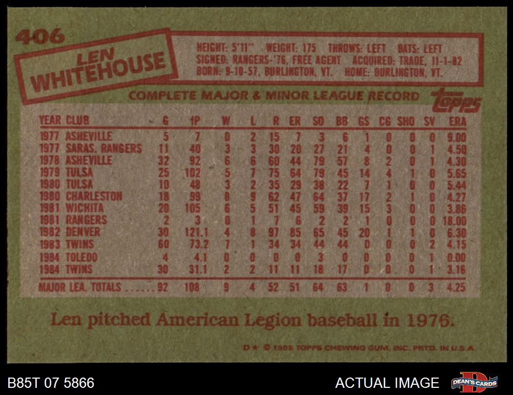 1985 Topps #406 Len Whitehouse 6 - EX/MT