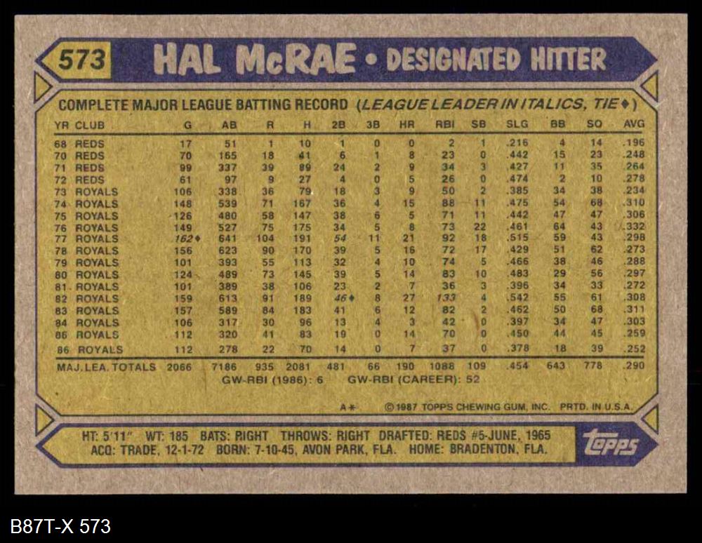 1987 Topps #573 Hal McRae