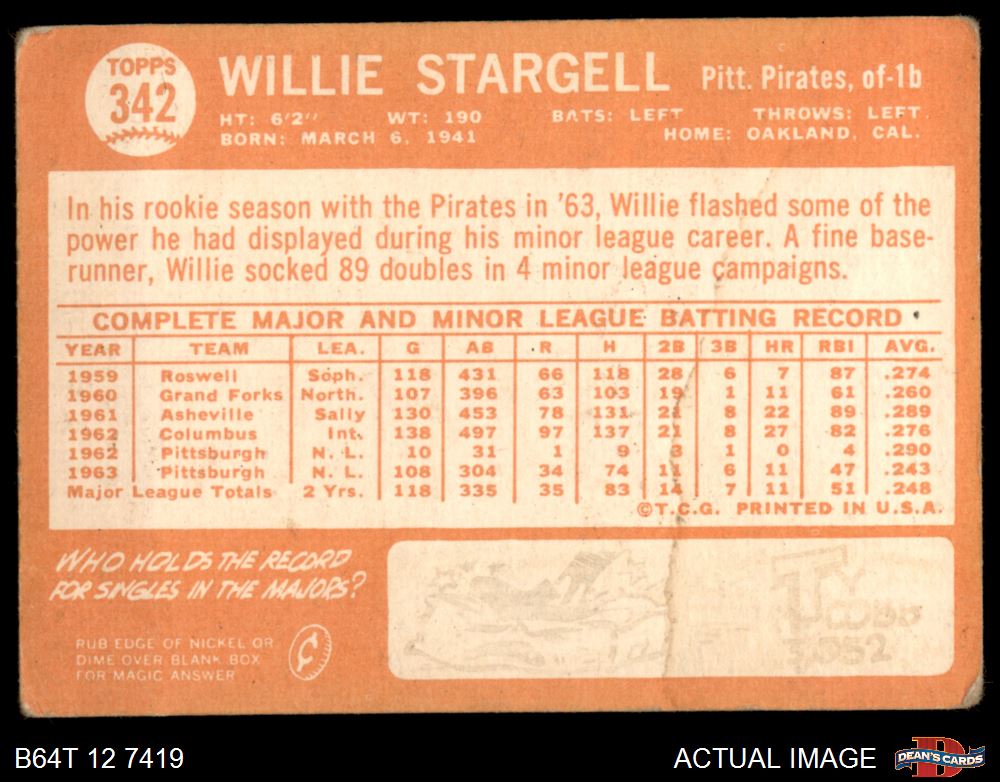 1964 Topps #342 Willie Stargell AUTHENTIC