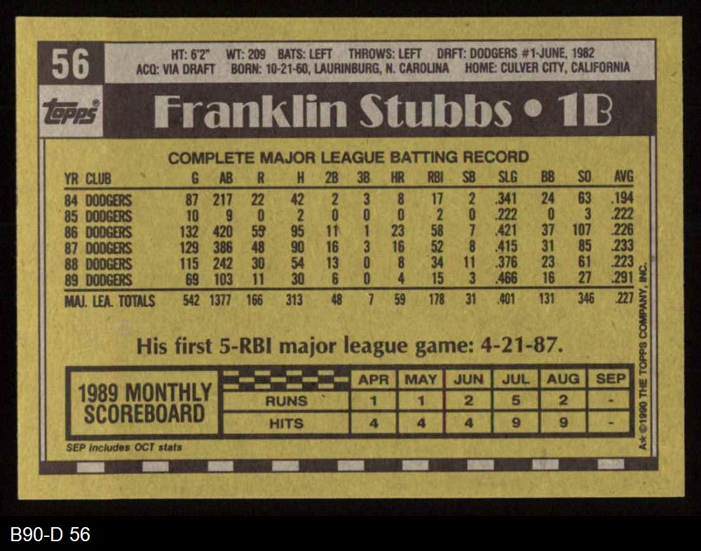 1990 Topps #56 Franklin Stubbs 8 - NM/MT