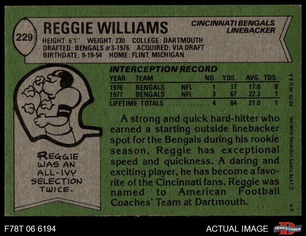 1978 Topps #229 Reggie Williams 6 - EX/MT