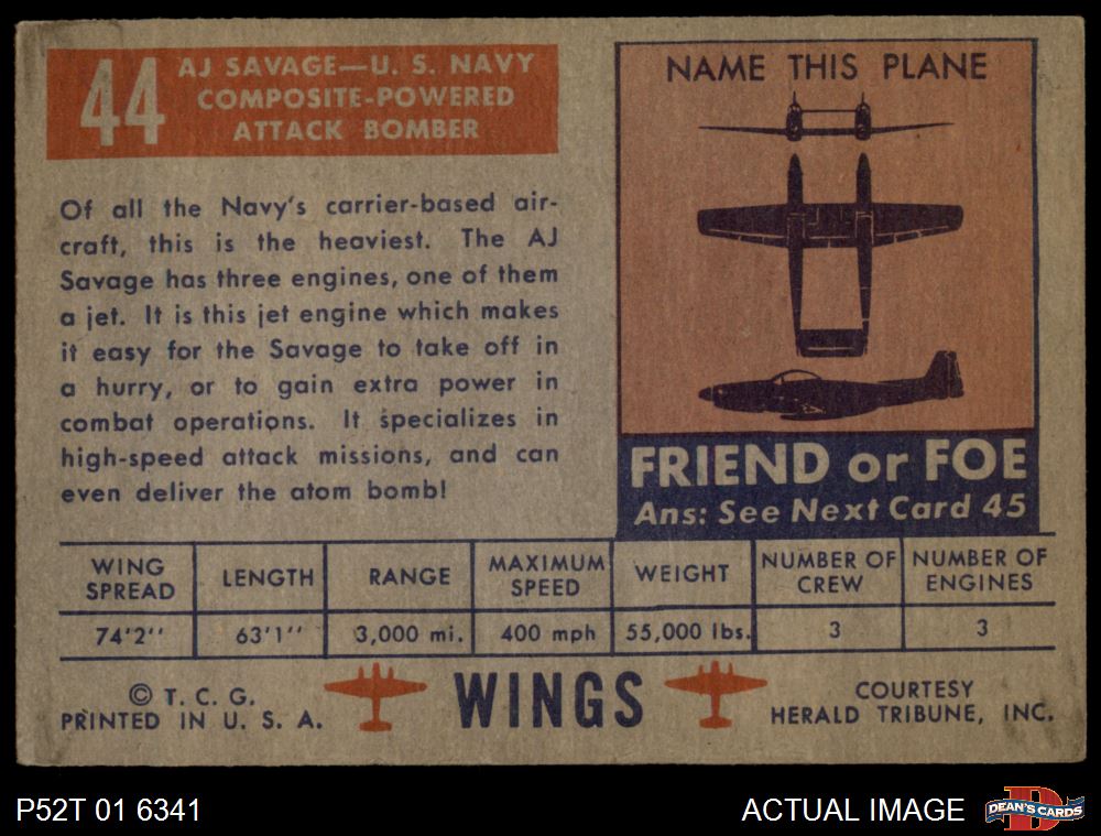 1952 Topps Wings #44 AJ Savage 4 - VG/EX