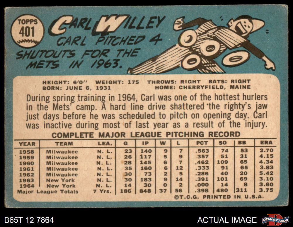 1965 Topps #401 Carlton Willey