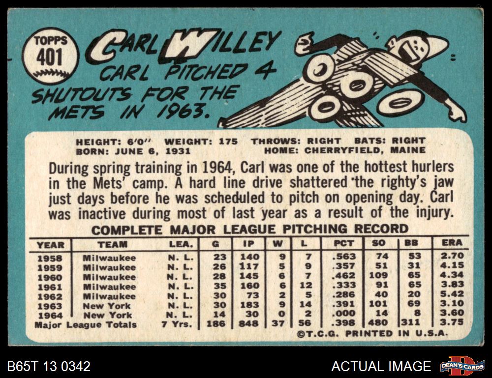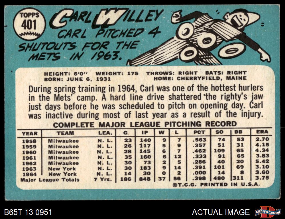 1965 Topps #401 Carlton Willey 2 - GOOD