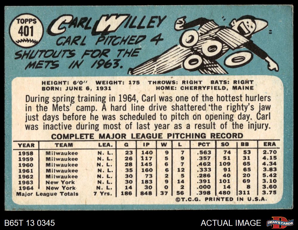 1965 Topps #401 Carlton Willey 2.5 - GD+