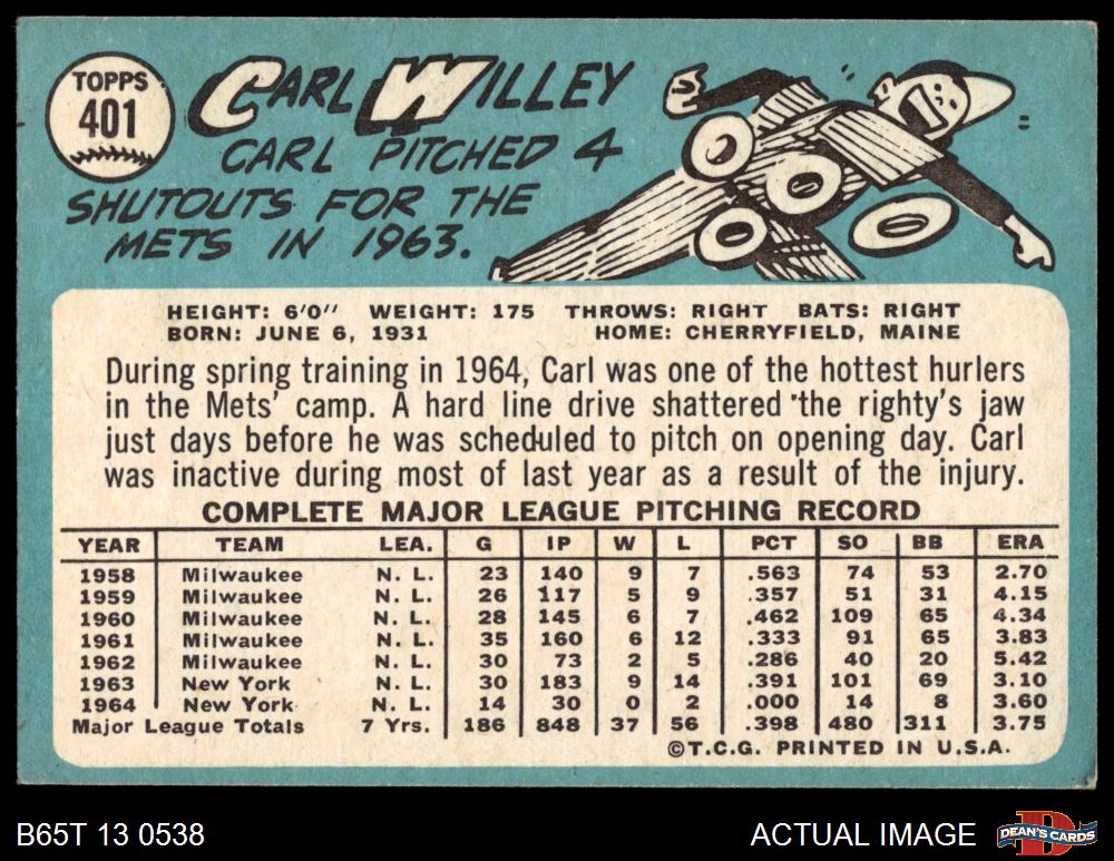 1965 Topps #401 Carlton Willey 3 - VG