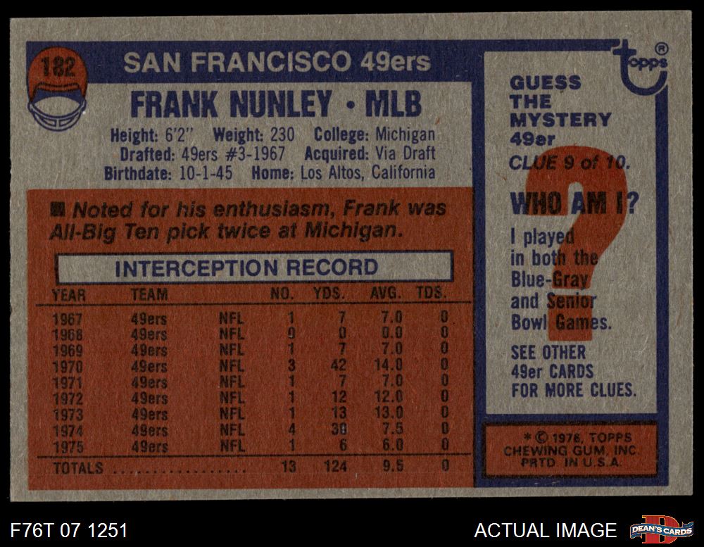 1976 Topps #182 Frank Nunley 4 - VG/EX