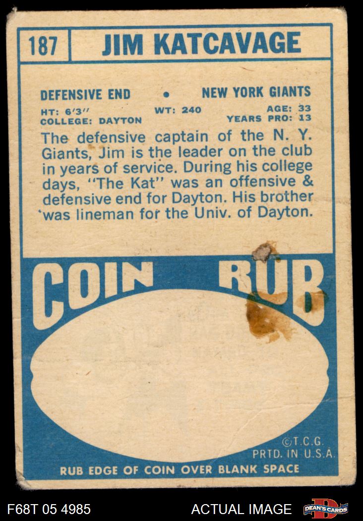 1968 Topps #187 Jim Katcavage AUTHENTIC