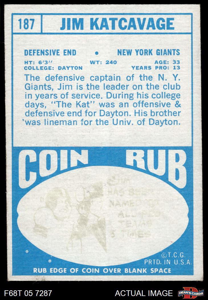 1968 Topps #187 Jim Katcavage 4 - VG/EX