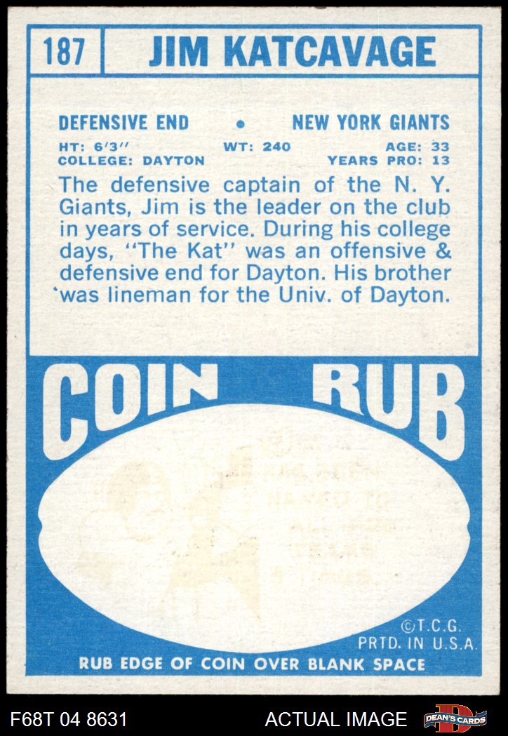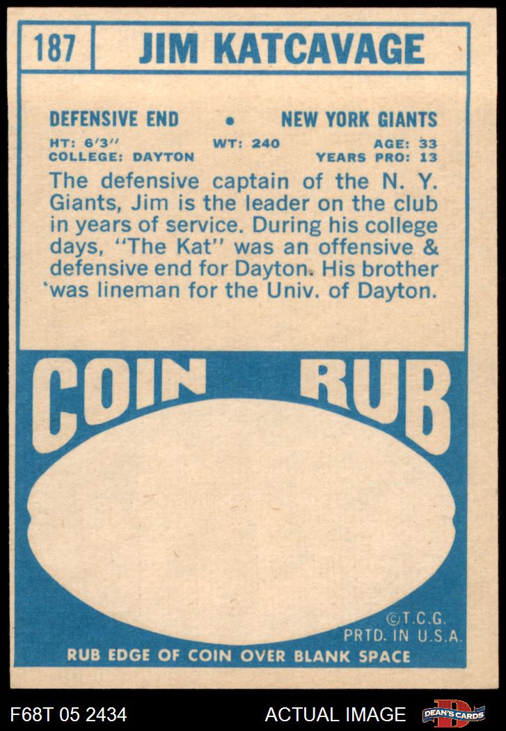 1968 Topps #187 Jim Katcavage 6 - EX/MT