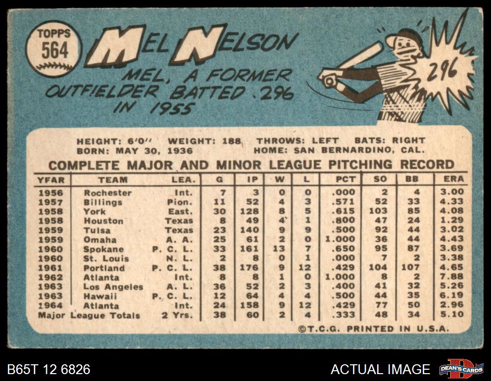 1965 Topps #564 Mel Nelson 3 - VG