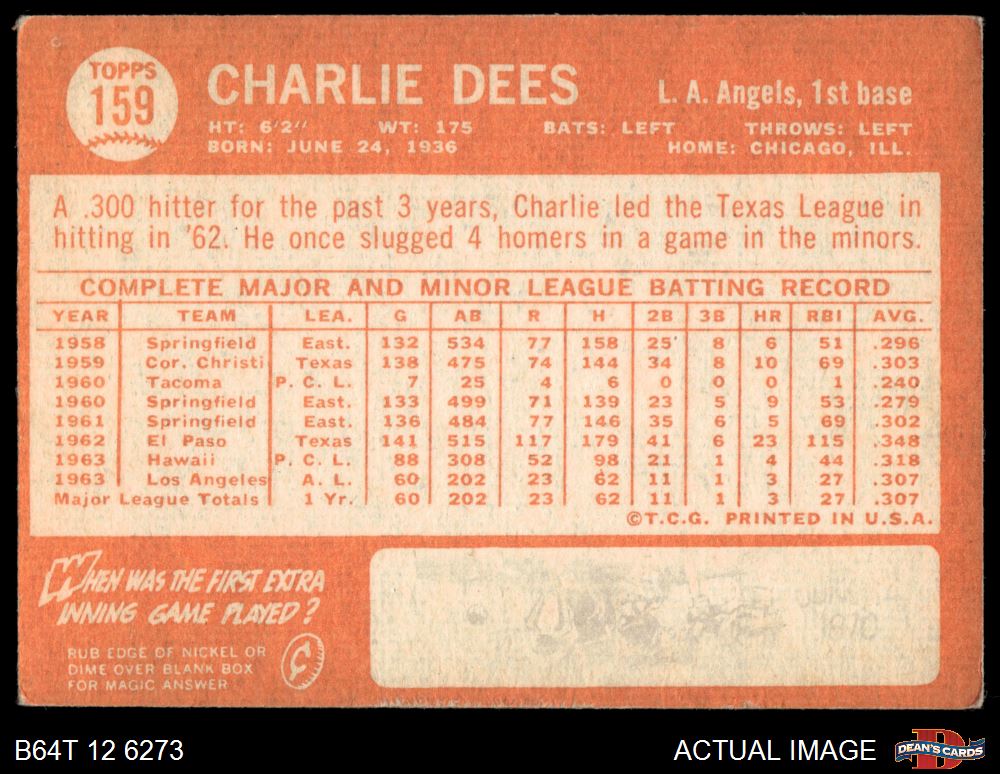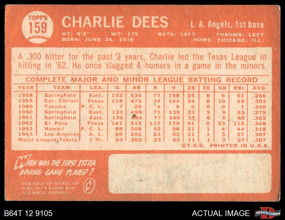 1964 Topps #159 Charlie Dees 2 - GOOD