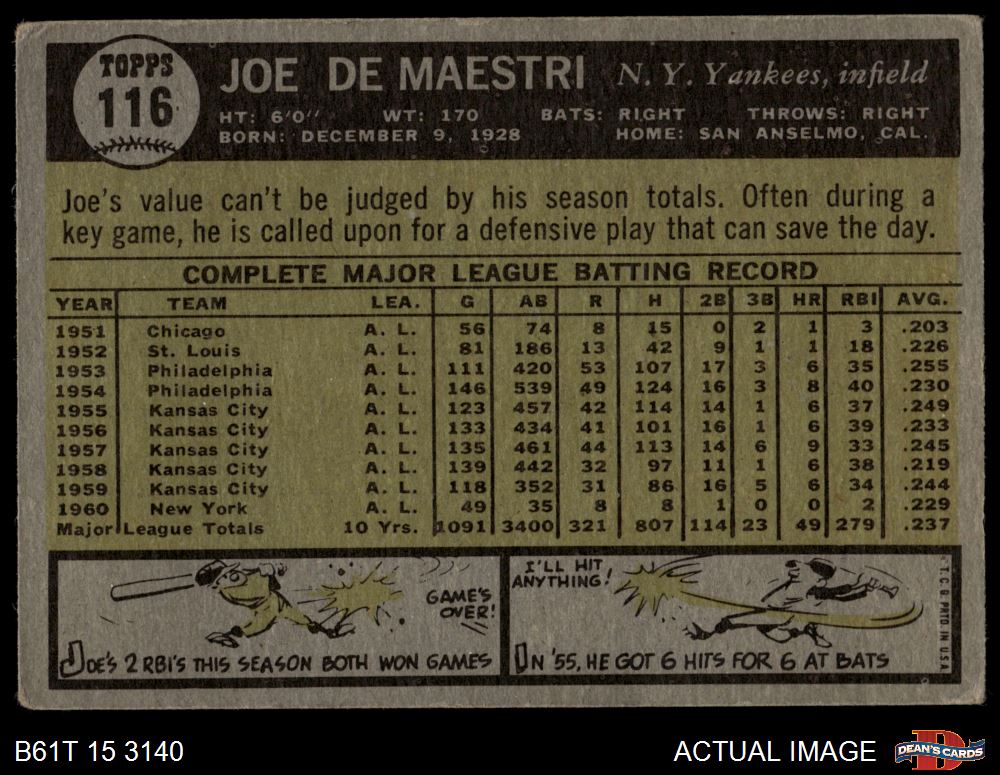 1961 Topps #116 Joe DeMaestri 3.5 - VG+
