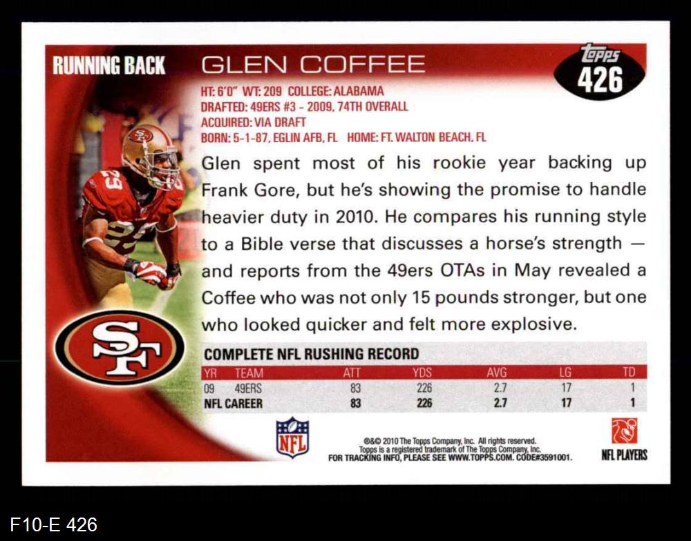 2010 Topps #426 Glen Coffee 8 - NM/MT