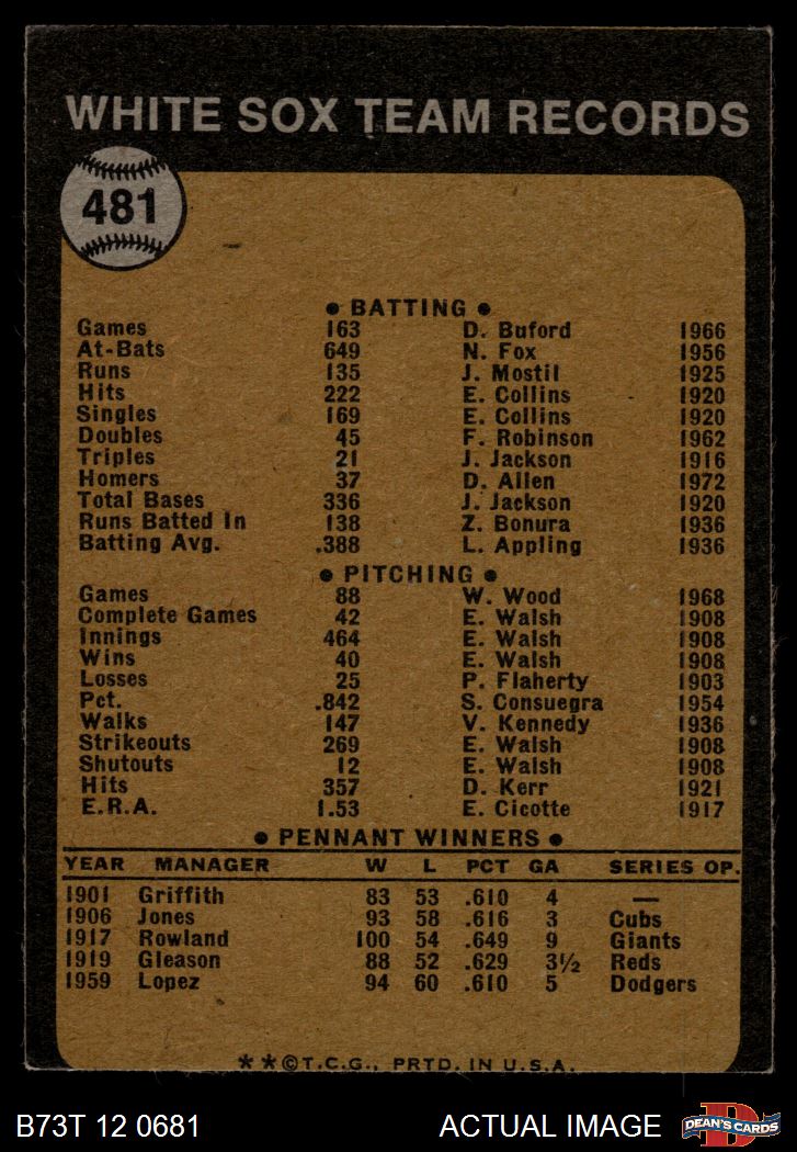 1973 Topps #481 White Sox Team 2 - GOOD