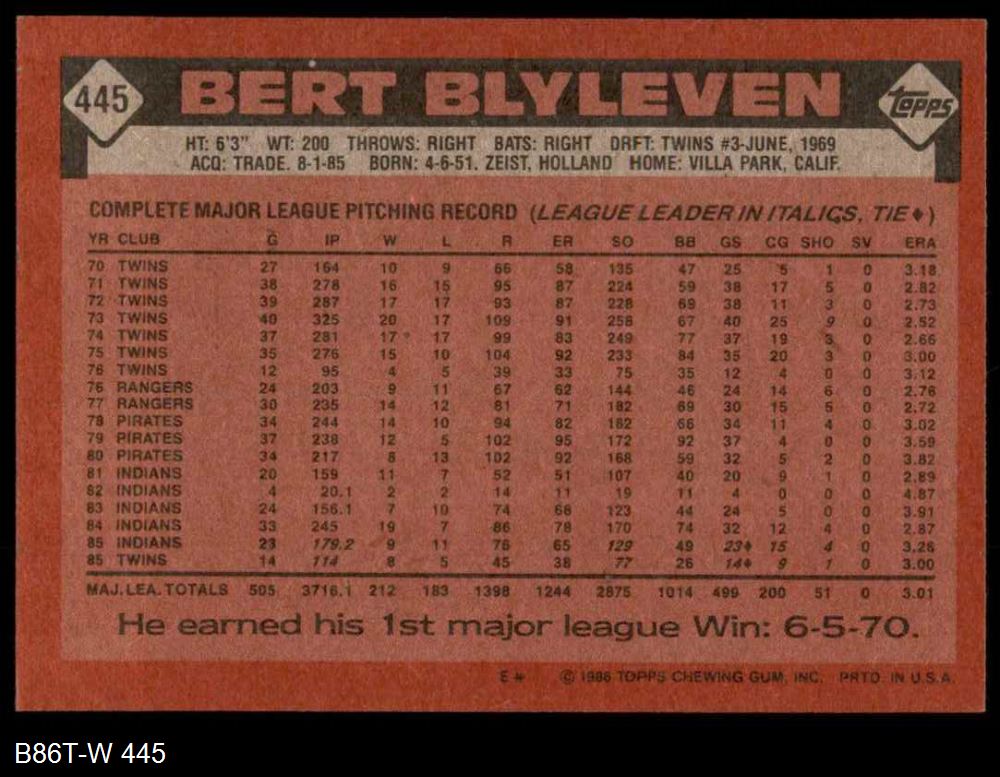 1986 Topps #445 Bert Blyleven 8 - NM/MT