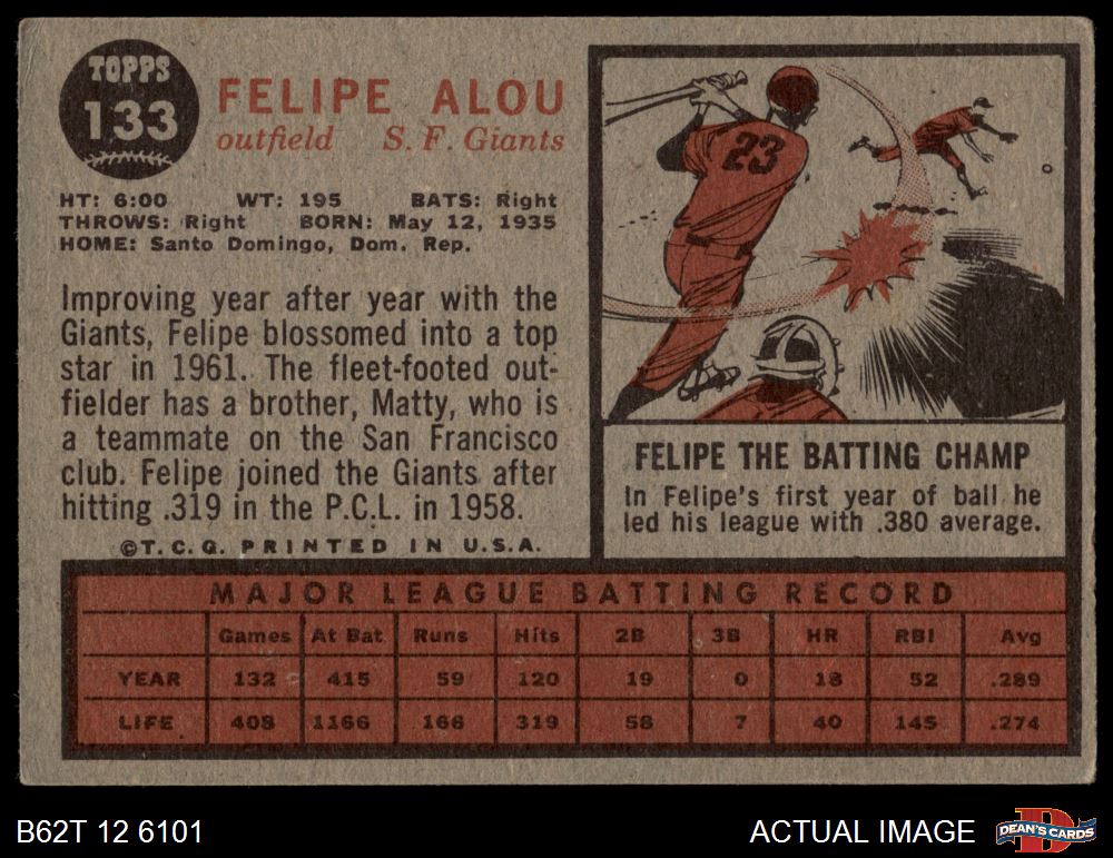 1962 Topps #133 NRM Felipe Alou 1.5 - FAIR