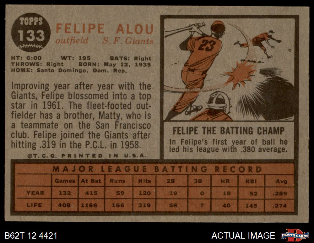 1962 Topps #133 NRM Felipe Alou 2 - GOOD