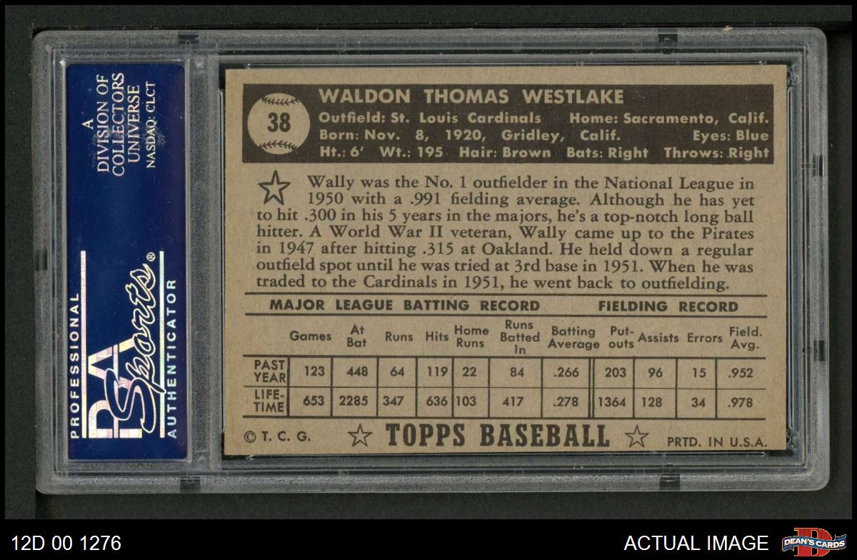 1952 Topps #38 Wally Westlake PSA 6 - EX/MT