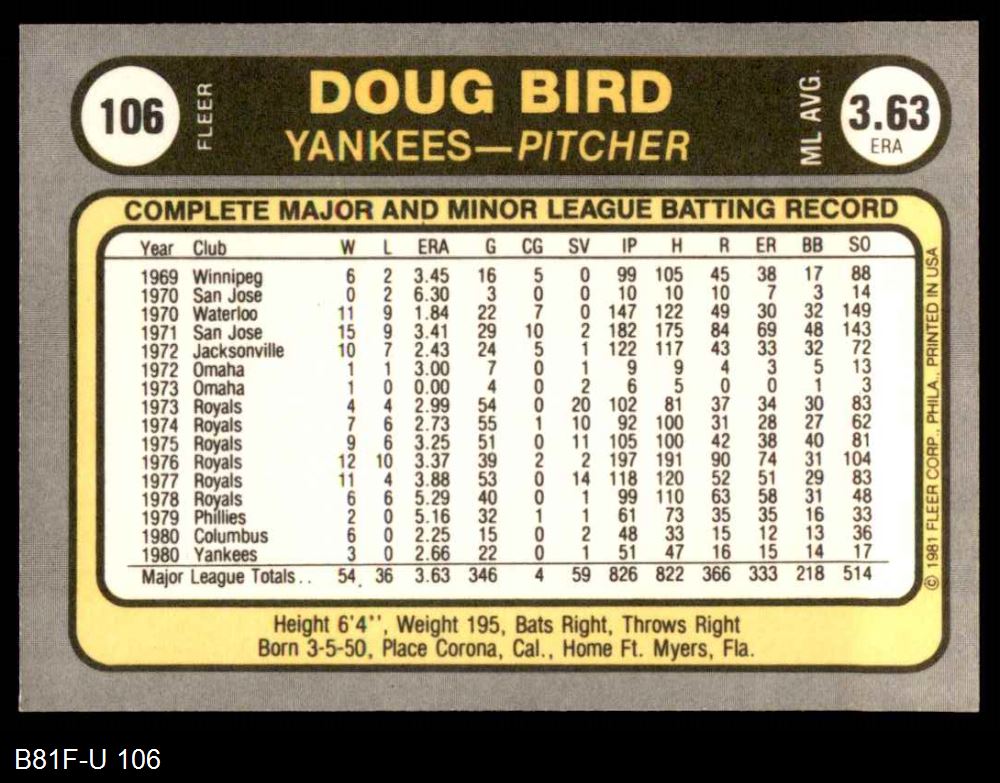 1981 Fleer #106 Doug Bird