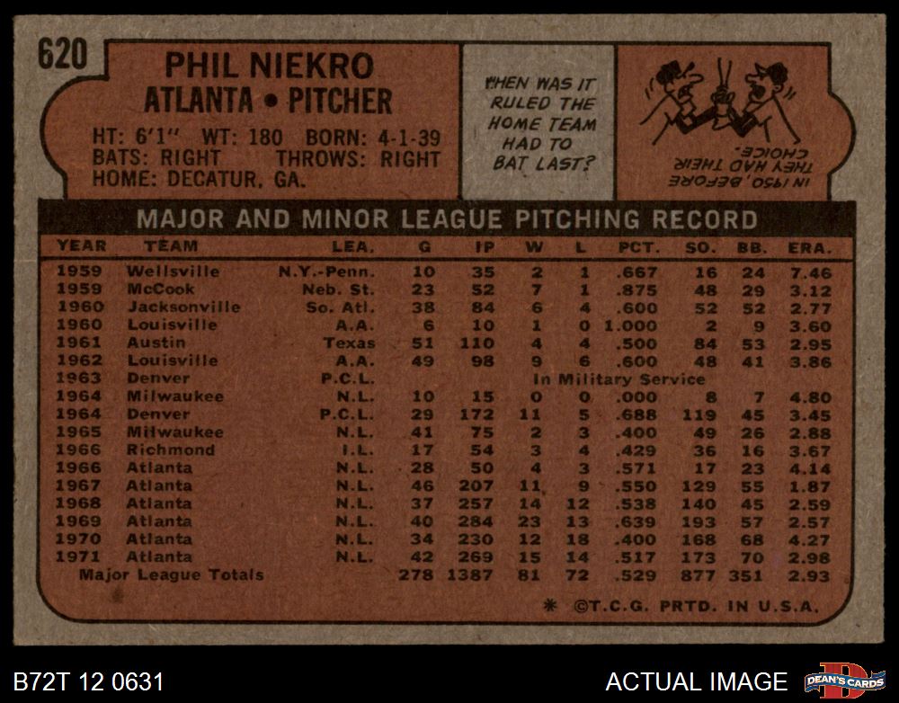 1972 Topps #620 Phil Niekro