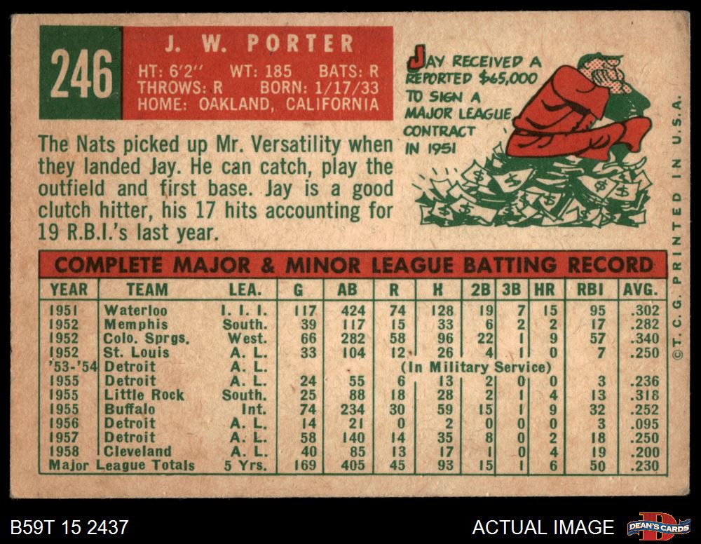 1959 Topps #246 J.W. Porter 3 - VG