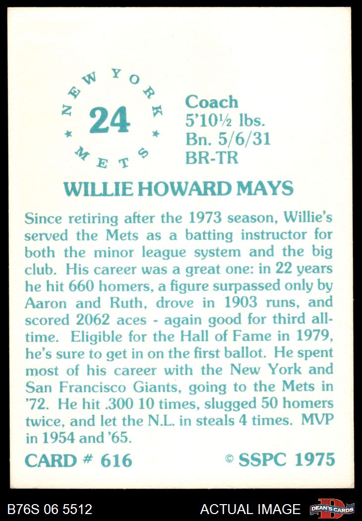1975 SSPC #616 Willie Mays 6 - EX/MT