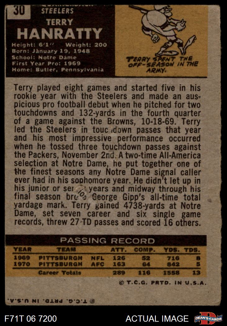 1971 Topps #30 Terry Hanratty 1 - POOR