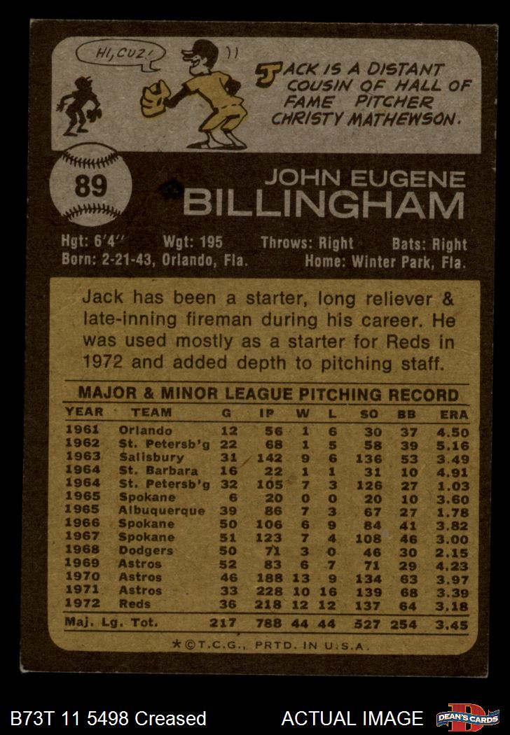1973 Topps #89 Jack Billingham 3 - VG