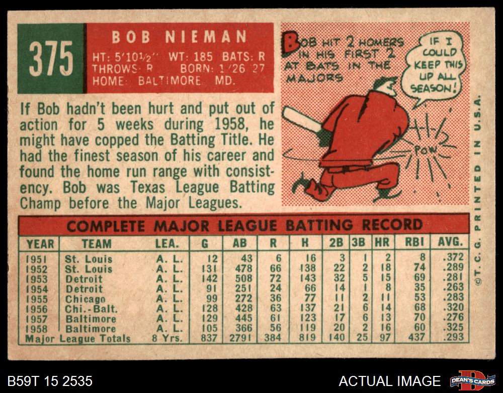 1959 Topps #375 Bob Nieman