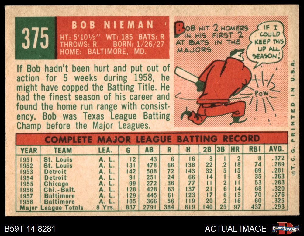 1959 Topps #375 Bob Nieman 4 - VG/EX