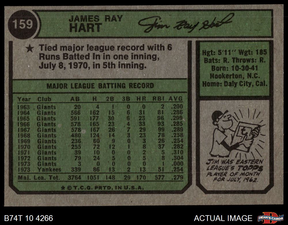 1974 Topps #159 Jim Ray Hart 4 - VG/EX
