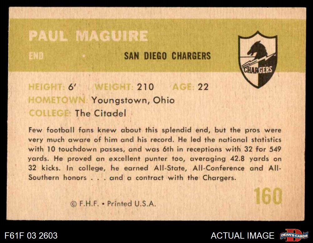 1961 Fleer #160 Paul Maguire