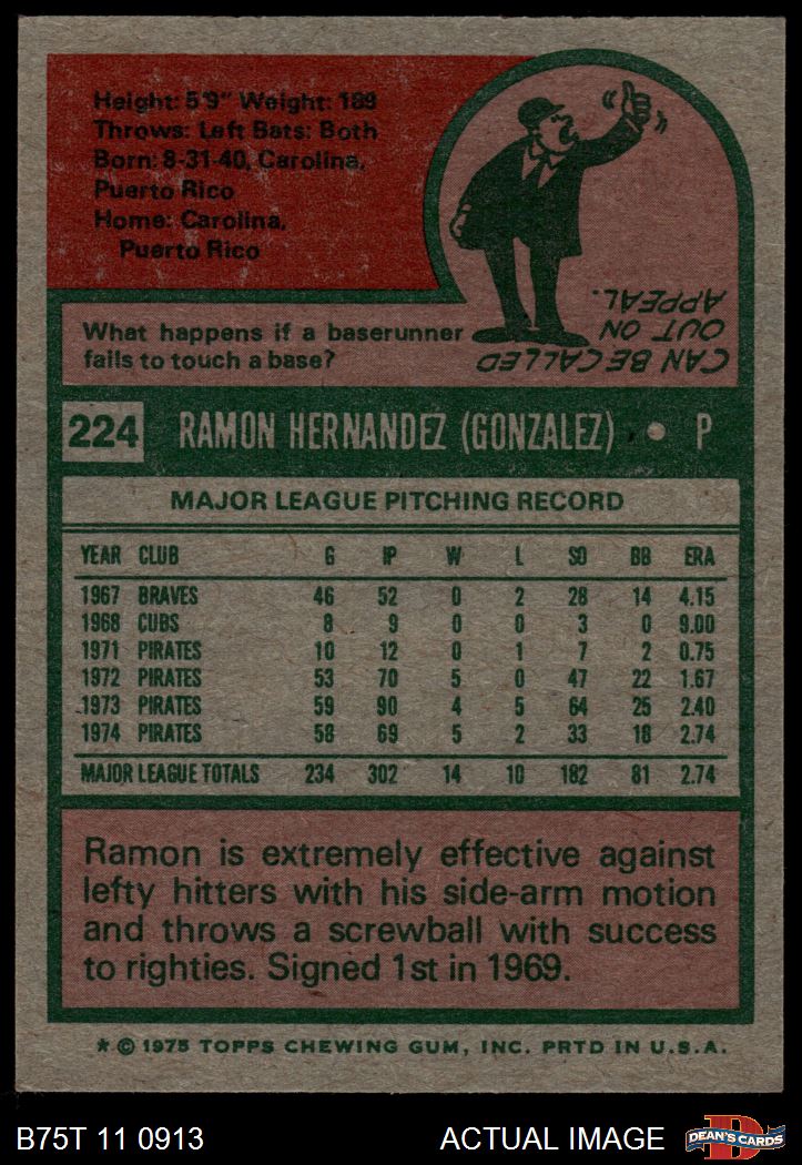 1975 Topps #224 Ramon Hernandez 4.5 - VG/EX+