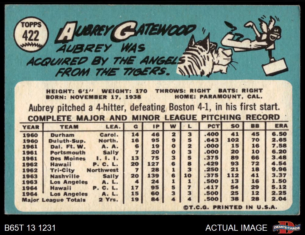 1965 Topps #422 Aubrey Gatewood 4 - VG/EX